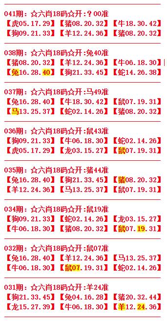 | 040期 | 鸡 | 4尾 | 红波 | 3头 | 牛18 |